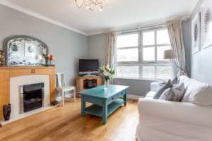 Curtain rails put up, USB plug sockets installed and carpets cleaned. Elsewhere in the apartment painting was refreshed, hard wood flooring installed in living room and hall. A kitchen unit was adapted to conceal replacement boiler.