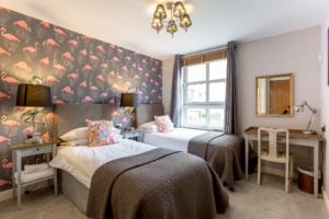 Decoration of a two bedroom apartment in the Old Town of Edinburgh. Design advice was offered to the client based their preferences and a fair bit was taken up! The work included wallpapering, painting of woodwork, ceilings and refinishing some of the furniture (flamingo bedroom) to make it less Ikea looking.